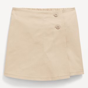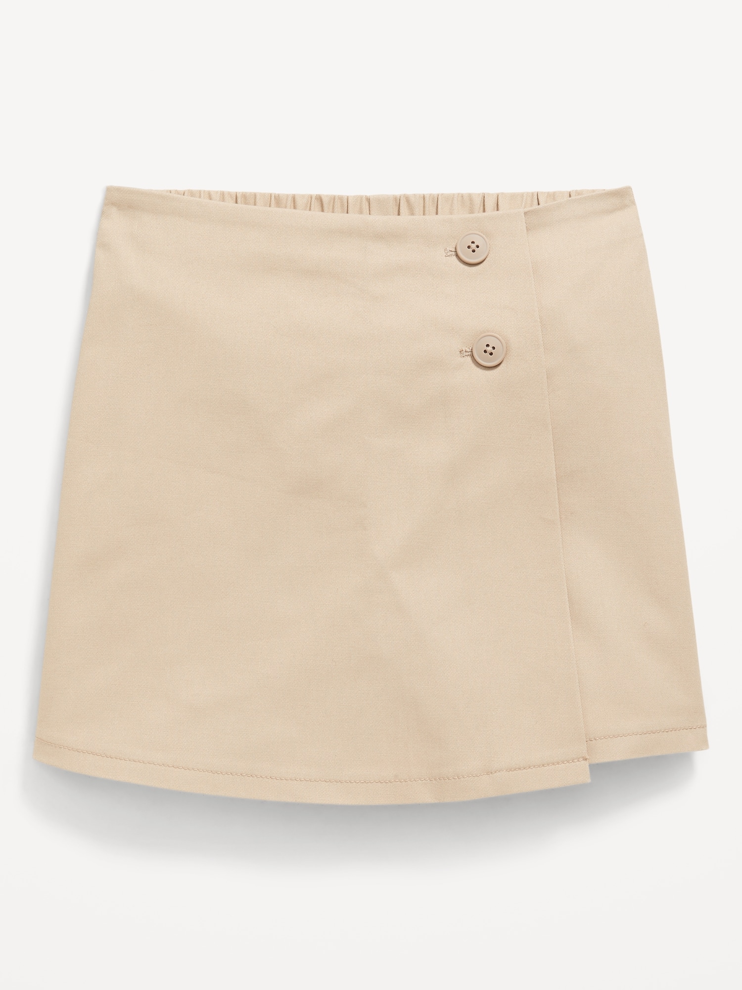 School Uniform Wrap-Front Skort for Girls: built-in shorts, elasticized back waist, decorative buttons, easy pull-on style, online exclusive, #766640