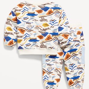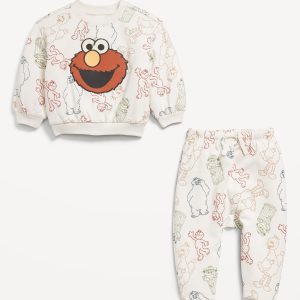 Sesame Streetâ„¢ Elmo Graphic Sweatshirt and Pants Set for Baby: crew neck, long sleeves, drop shoulders, banded cuffs and hem, coordinating bottoms, elasticized waistband, functional drawstring, licensed graphic, © 2025 Sesame Workshop. “Sesame Street” and its logo are trademarks of Sesame Workshop. All rights reserved., #803611
