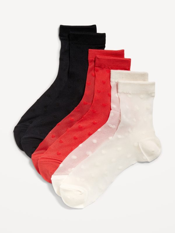 Sheer Nylon Crew Sock 3-Pack for Women: includes 3 pairs of sheer crew socks in different colors and prints, select colors have embellished dot accents, notched toe seams for comfort, #584325