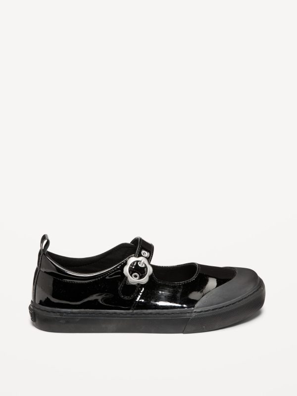 Shiny Faux-Leather Mary-Jane Sneaker for Girls: buckled mary-jane strap across foot, round toe, cushioned foot bed, textured outsole, thermoplastic rubber midsole, #762465
