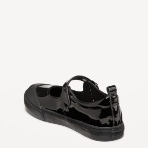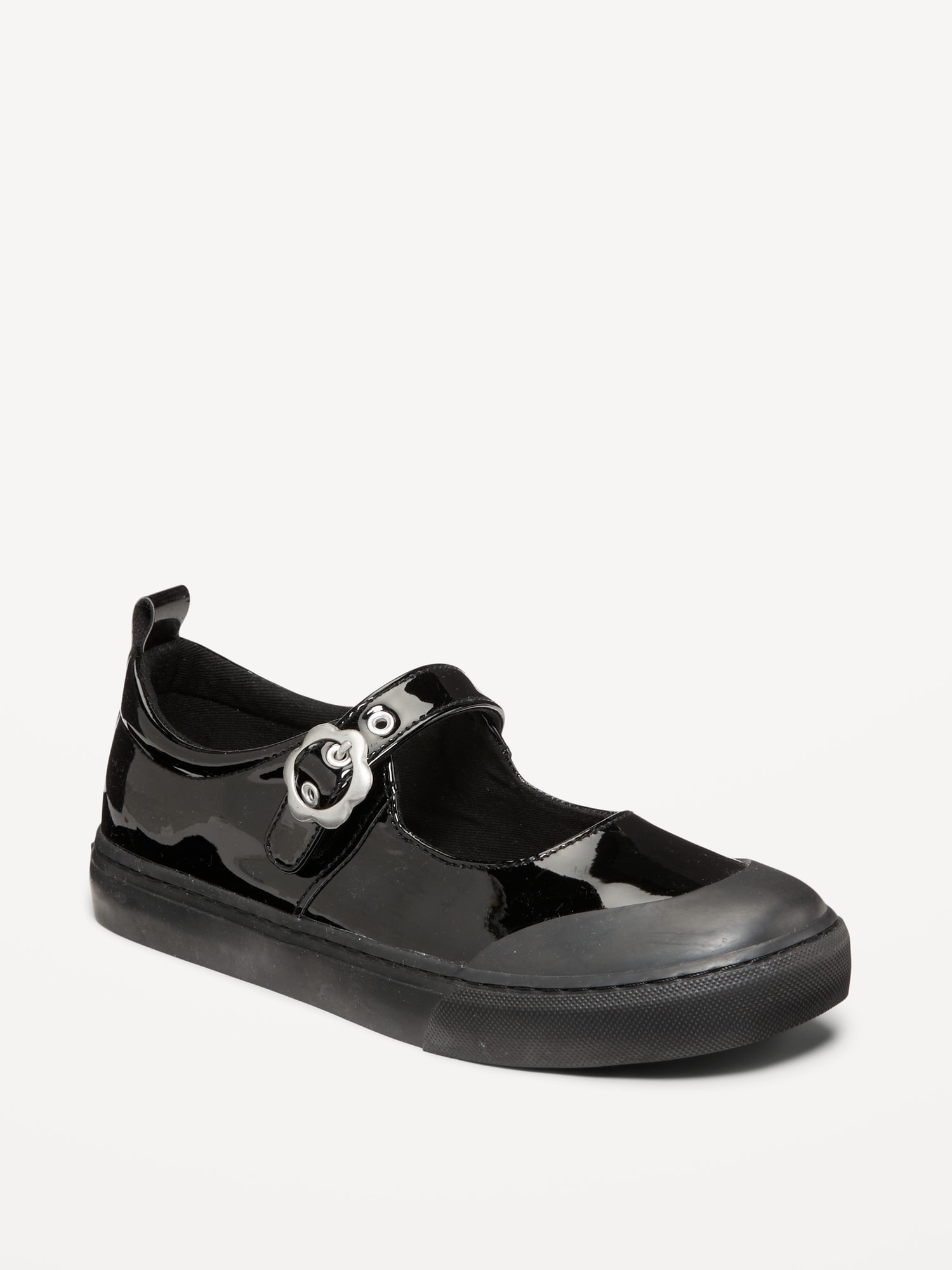 Shiny Faux-Leather Mary-Jane Sneaker for Girls: buckled mary-jane strap across foot, round toe, cushioned foot bed, textured outsole, thermoplastic rubber midsole, #762465
