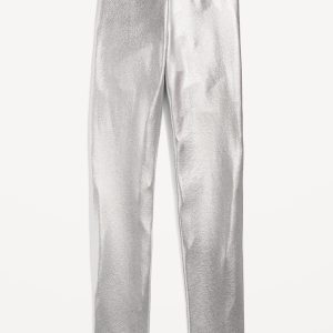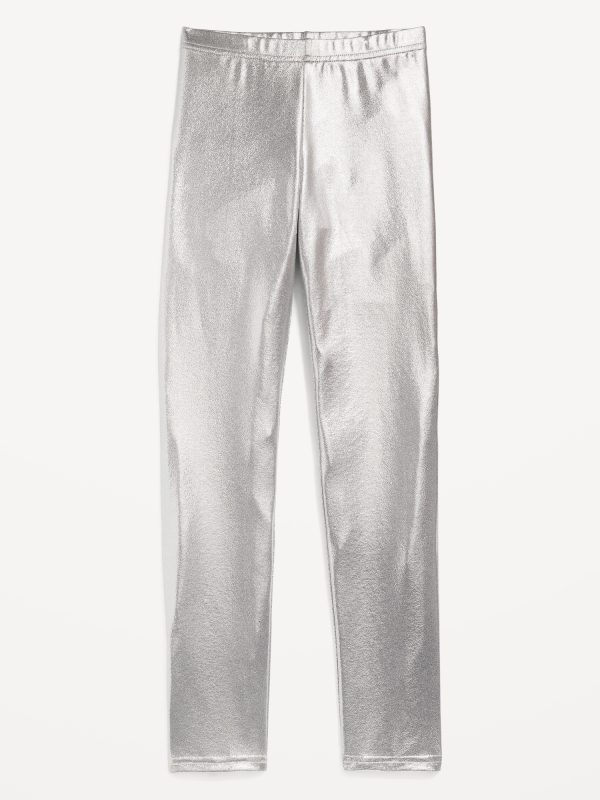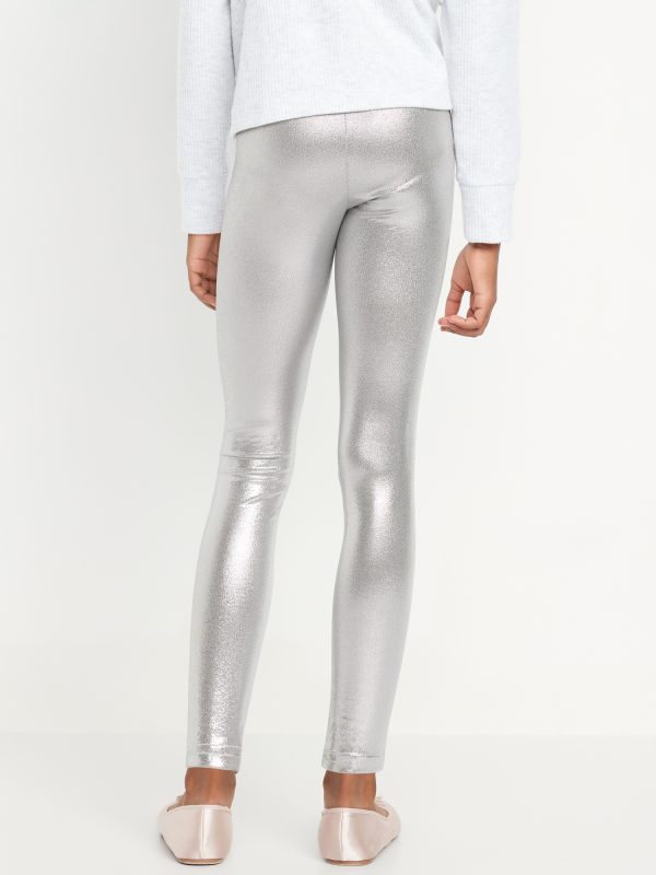 Shiny Foil Print Leggings for Girls: elasticized waistband, easy pull-on style, #889593