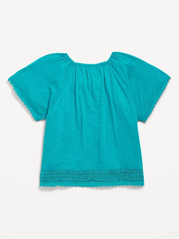 Short Flutter-Sleeve Crochet-Trim Top for Girls