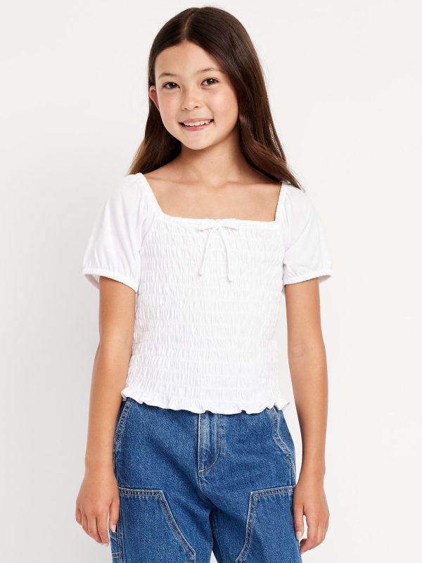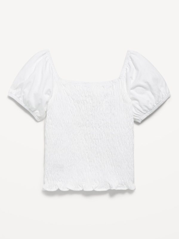 Short Puff-Sleeve Smocked Top for Girls: square neckline, short puff sleeves, smocked bodice, #767944