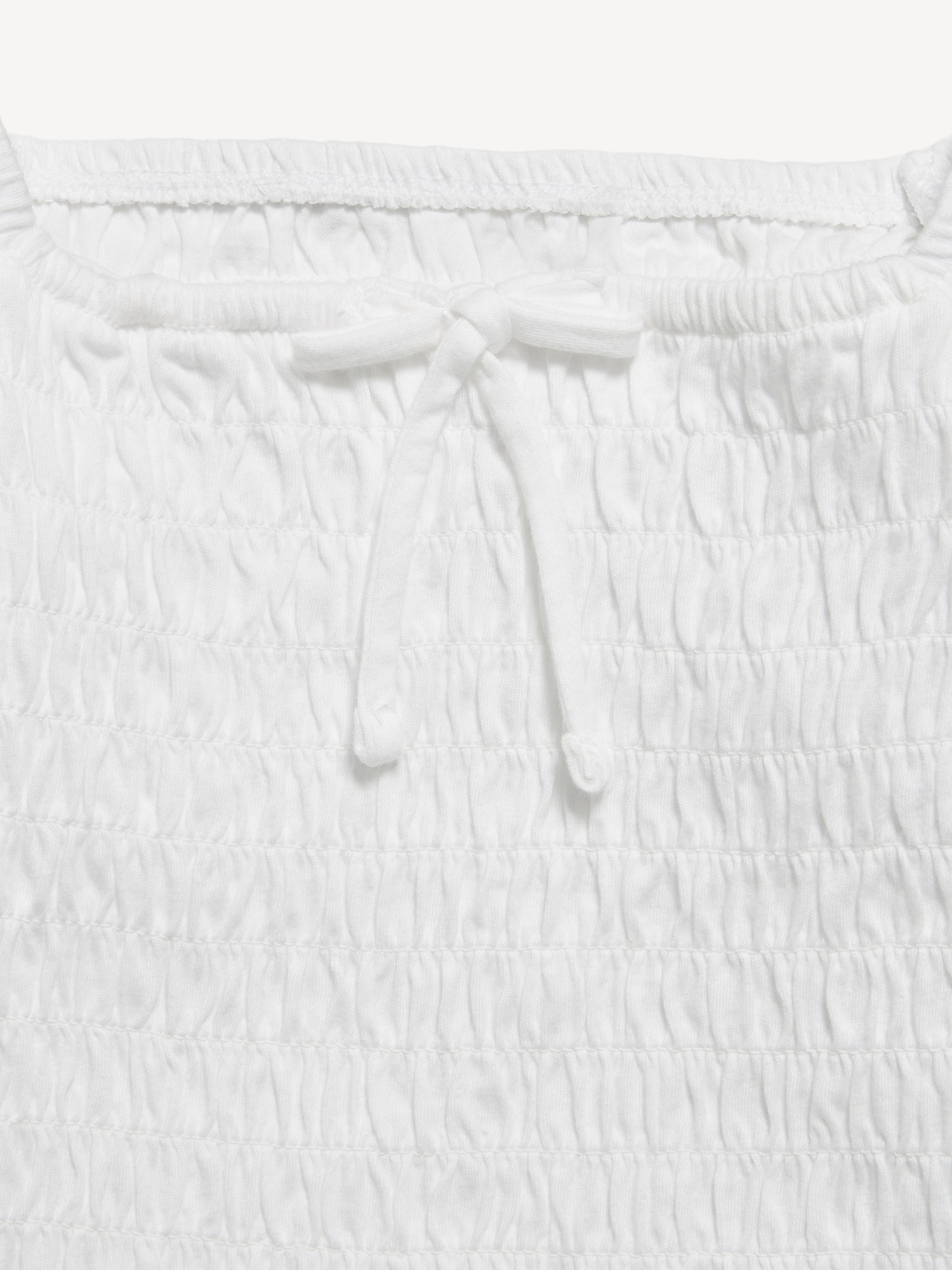 Short Puff-Sleeve Smocked Top for Girls: square neckline, short puff sleeves, smocked bodice, #767944