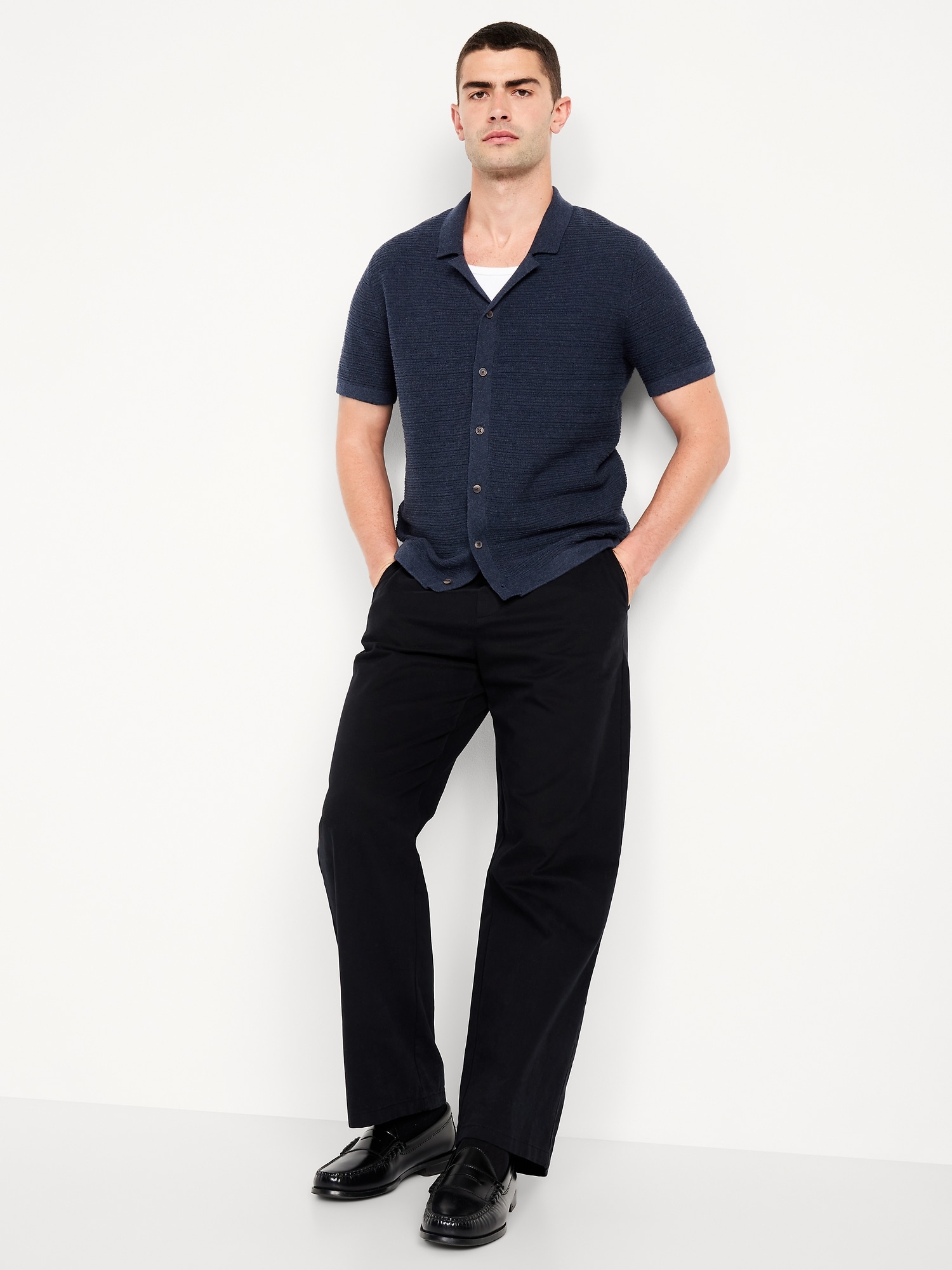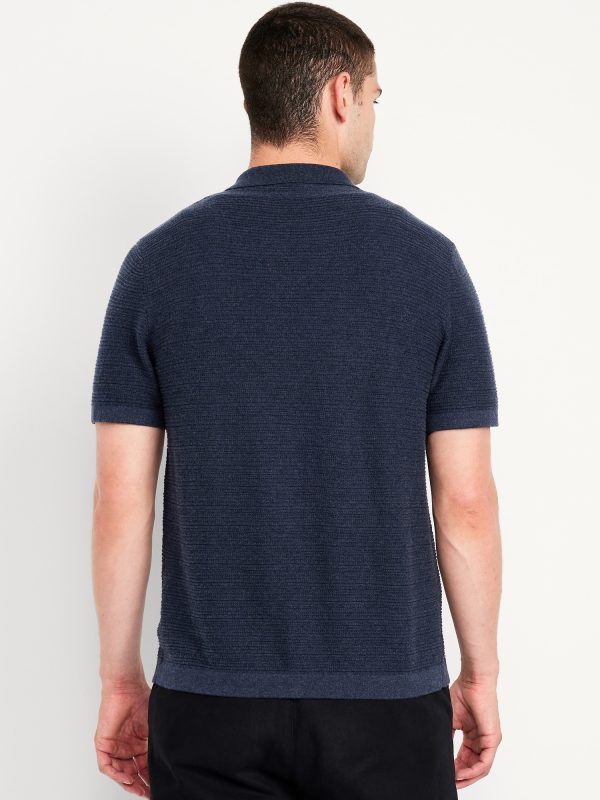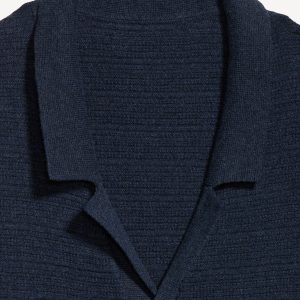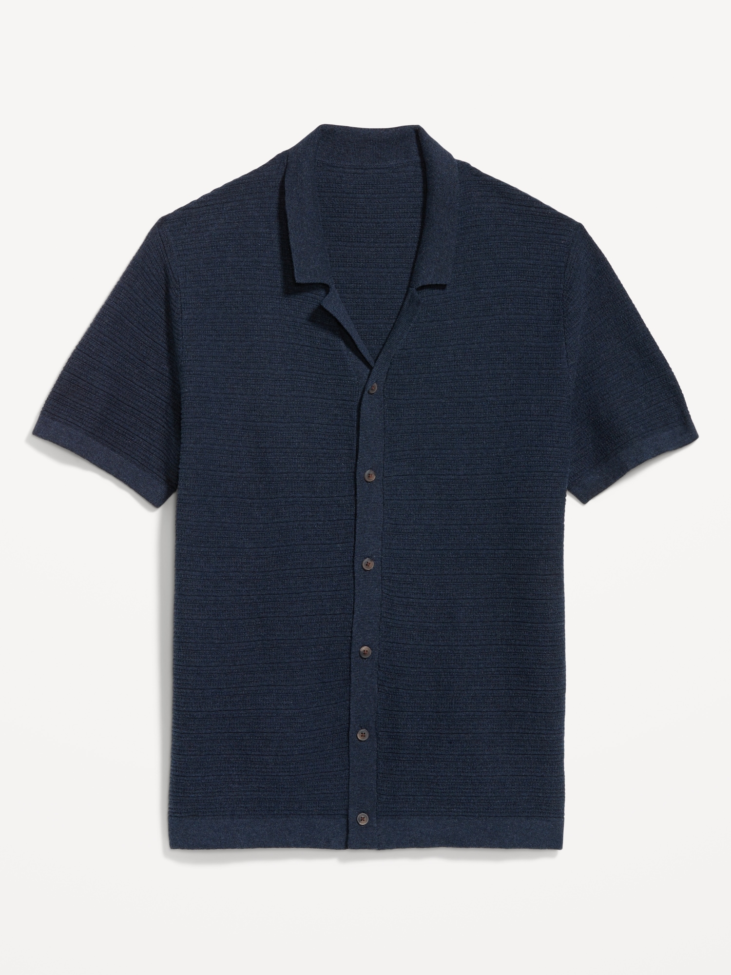 Short-Sleeve Camp Sweater: spread collar, short sleeves, buttoned placket, pullover style, #802042