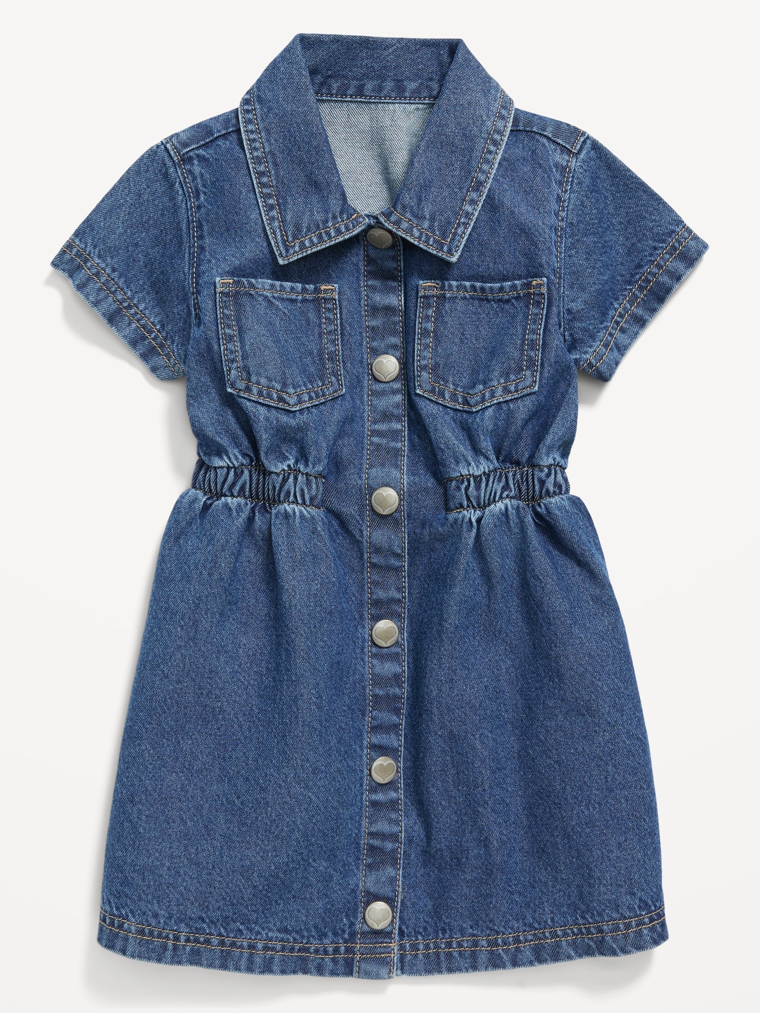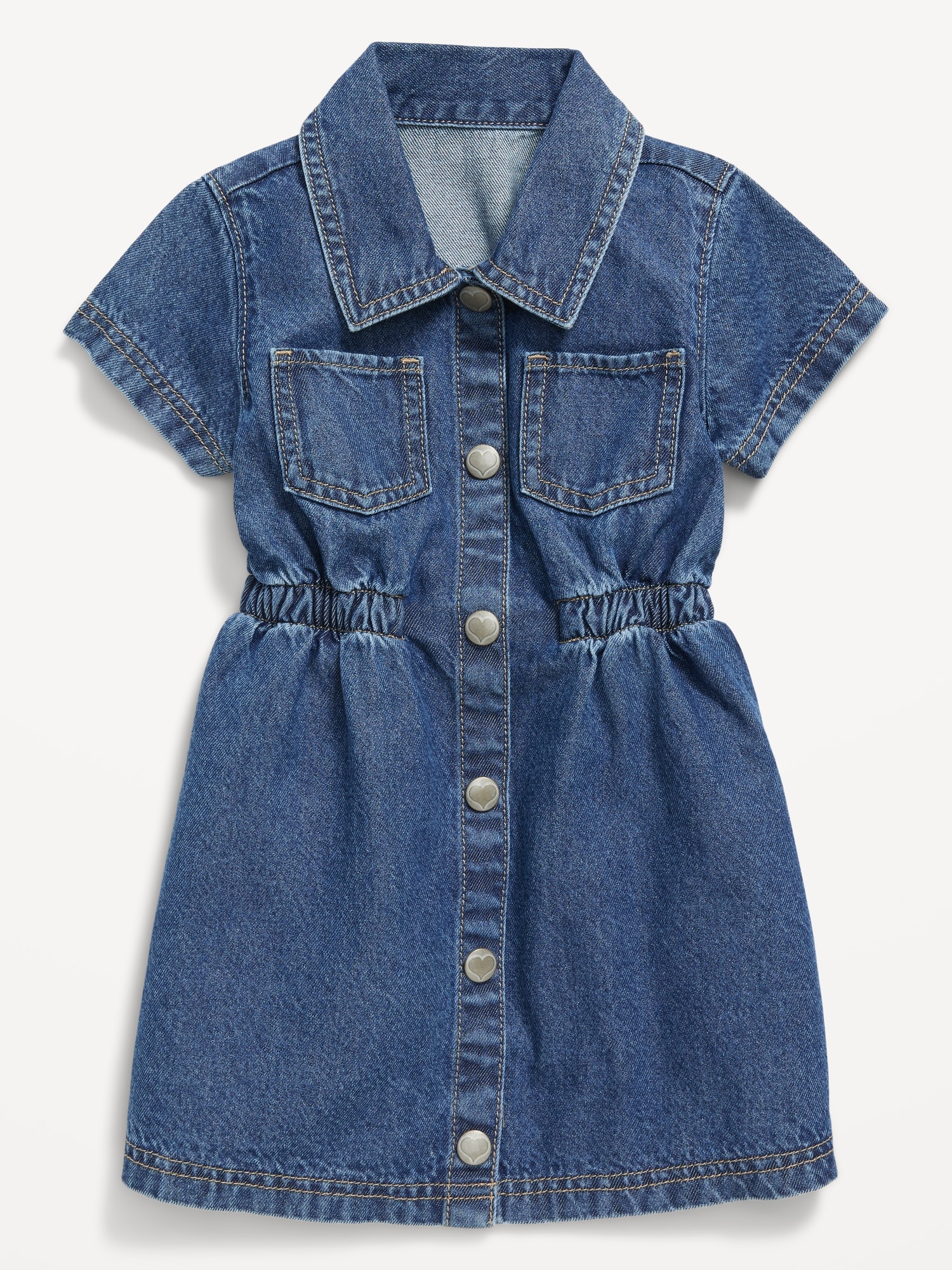 Short-Sleeve Cinched-Waist Jean Dress for Toddler Girls