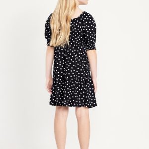 Short-Sleeve Crinkle Crepe Swing Dress for Girls