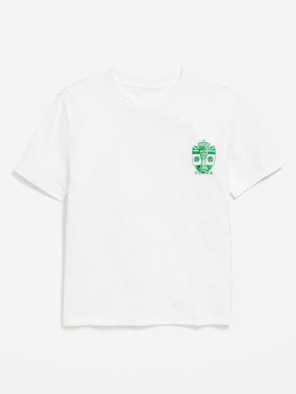 Short-Sleeve Graphic T-Shirt for Boys: crew neck, short sleeves, graphic at front, select colors: small-scale graphic at front and large scale graphic at back, #663027