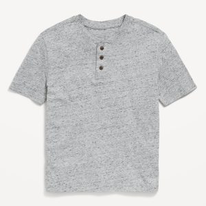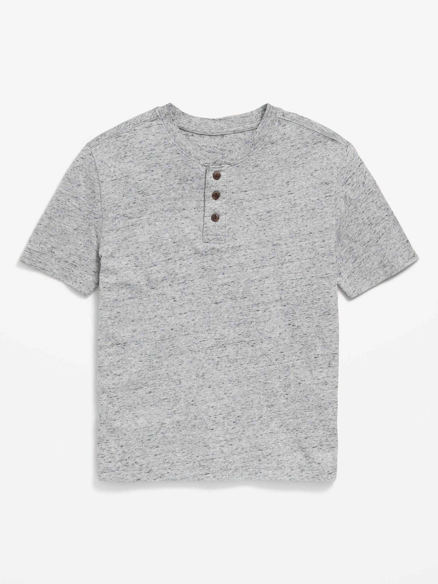 Short-Sleeve Henley T-Shirt for Boys: crew neck, short raglan sleeves, three-button henley placket, color block, #756921