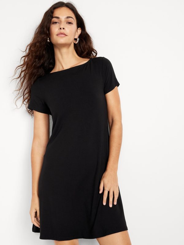 Short-Sleeve Mini Swing Dress: crew neck, short sleeves, available exclusively online or at outlet stores, #808844