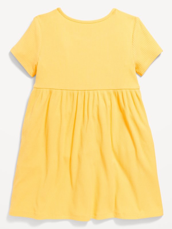 Short-Sleeve Ribbed Fit and Flare Pocket Dress for Toddler Girls