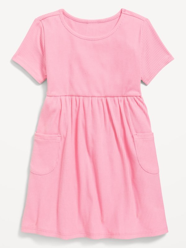 Short-Sleeve Ribbed Fit and Flare Pocket Dress for Toddler Girls