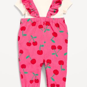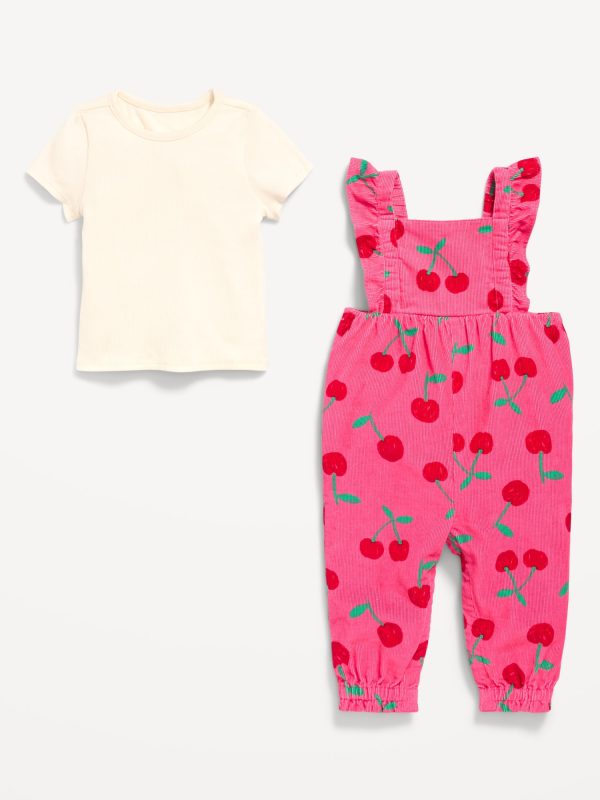 Short-Sleeve Ribbed T-Shirt and Corduroy Jumpsuit Set for Baby