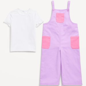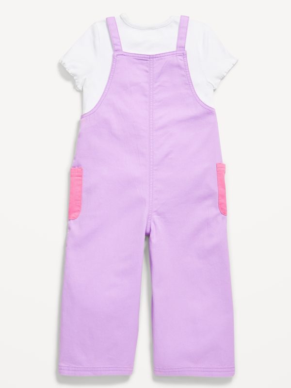 Short-Sleeve T-Shirt and Pocket Jumpsuit Set for Toddler Girls