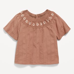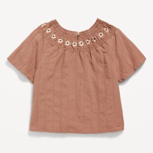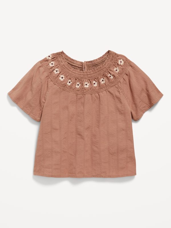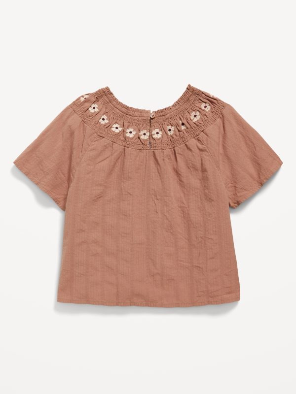 Short-Sleeve Textured Embroidered Top for Girls