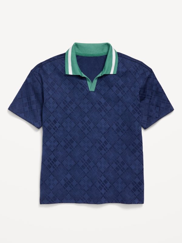 Short-Sleeve Textured-Knit Collared Shirt for Boys