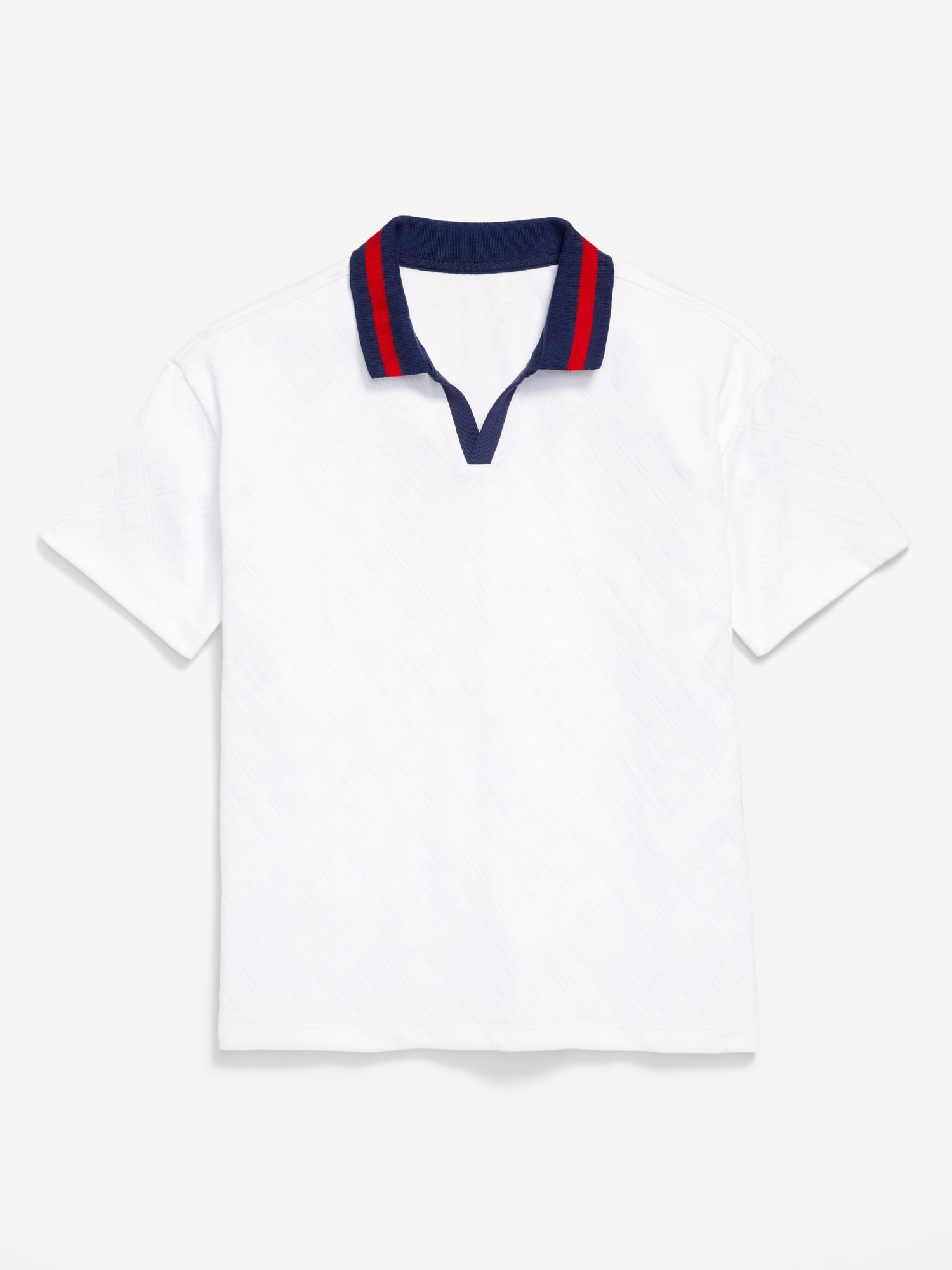 Short-Sleeve Textured-Knit Collared Shirt for Boys: ribbed spread collar, v neck, short sleeves, #750298