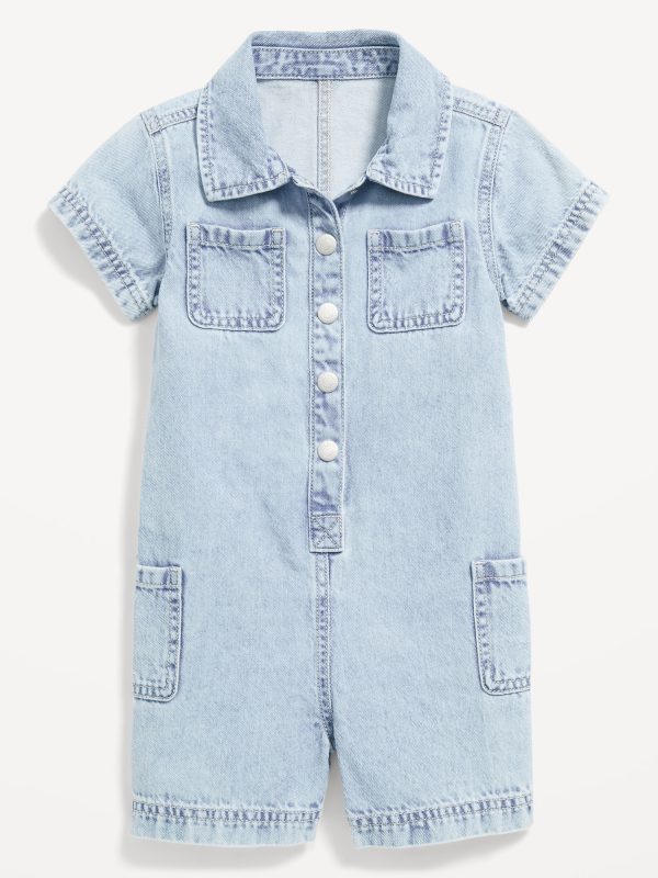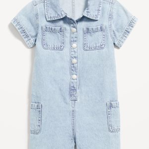Short-Sleeve Utility Jean Romper for Toddler Girls
