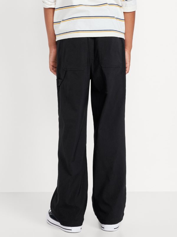 ShredTech Baggy Carpenter Pants for Boys: interior adjustable waistband, snap-button closure in sizes 5-8, regular button closure in sizes 10-20, zip fly, diagonal pockets, panel at each leg, utility patch pockets at back, built-in hammer loop at left leg, made to shred — not shred up., #804693