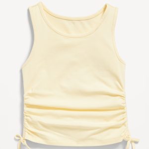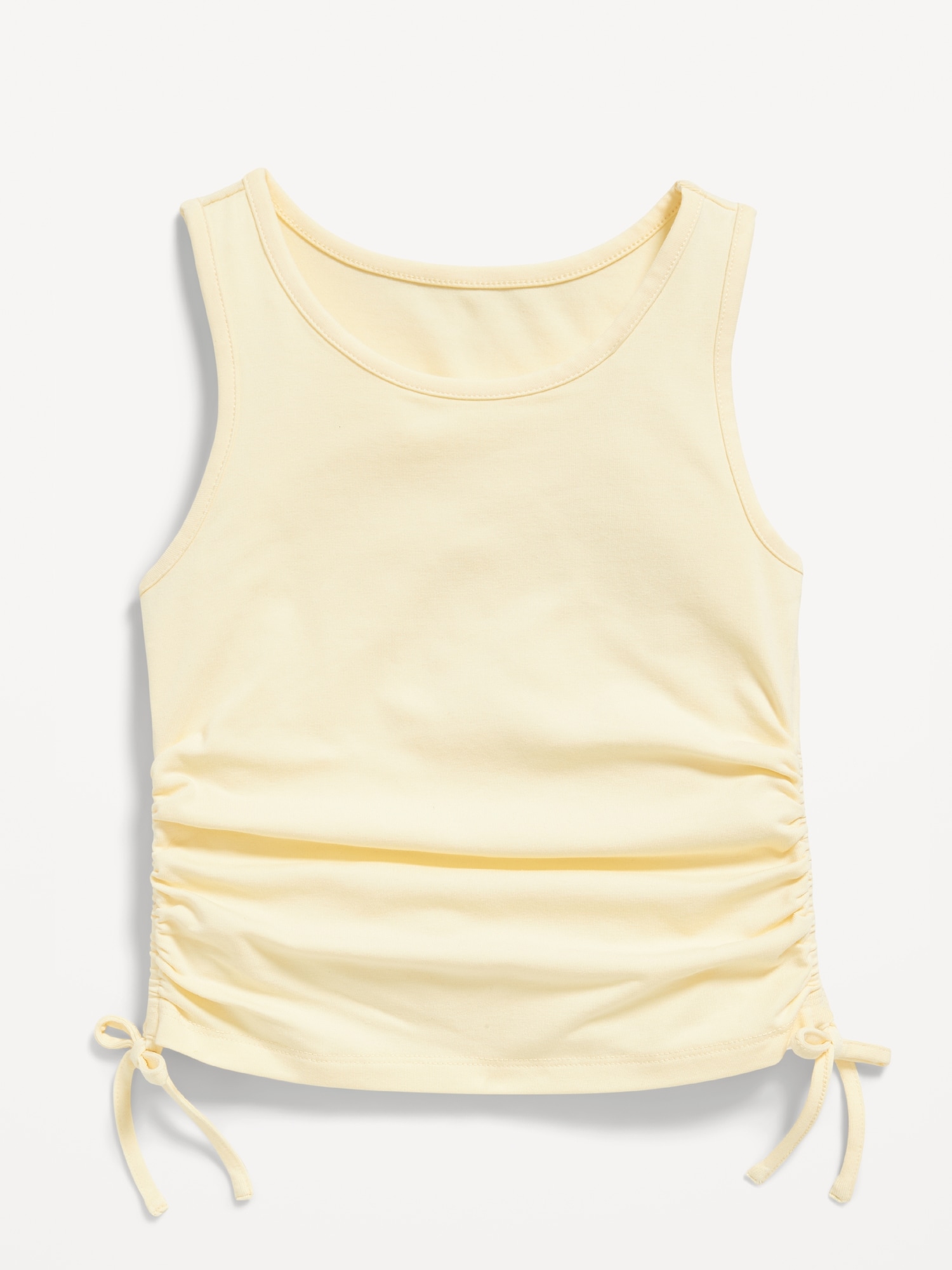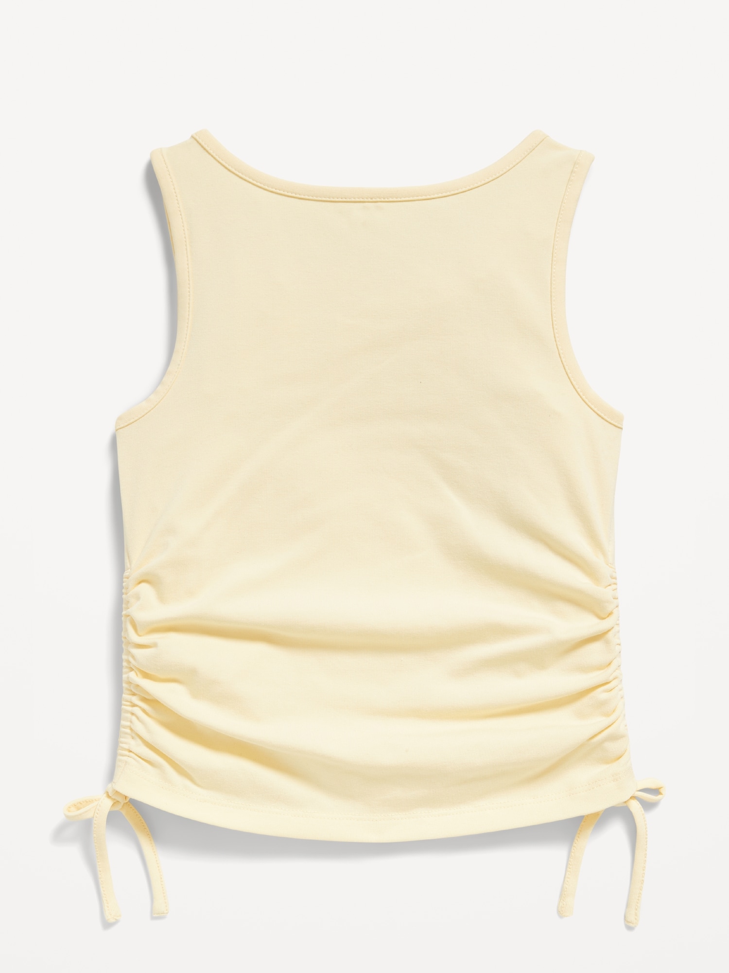 Side-Ruched Tank Top for Girls: scoop neckline, sleeveless, ruching at sides, decorative ties at each side, #766963
