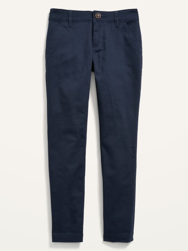 Skinny School Uniform Pants for Girls: Uniform Guarantee: Uniforms may be returned for a full refund with the original receipt for 365 days from the date of purchase.interior adjustable waistband expands, snap-button closure in sizes 5-8, regular button closure in sizes 10-20, zip fly, flat front, diagonal on-seam pockets, decorative welt faux pockets in back, #877990