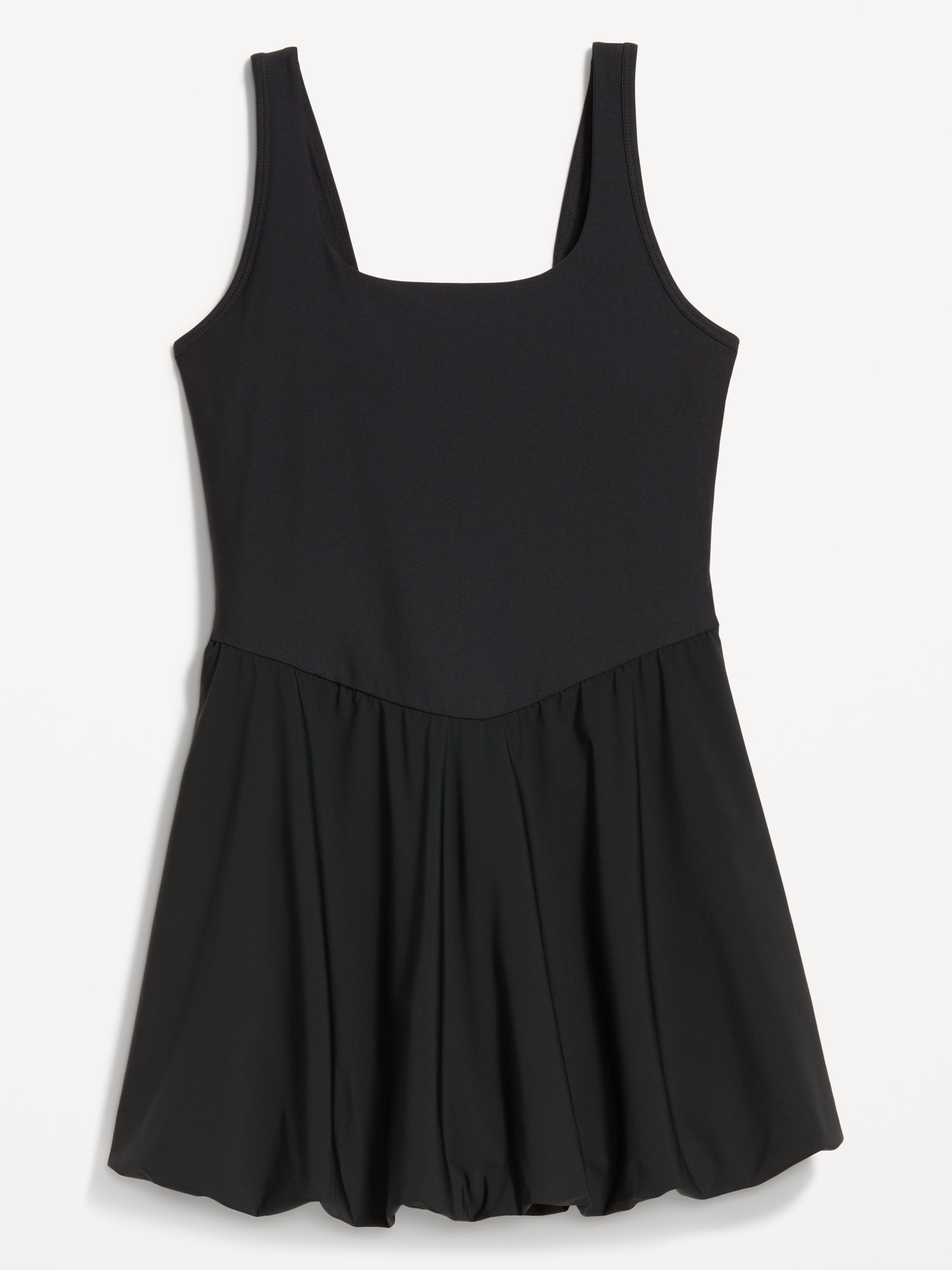 SleekTech Bubble Dress: Featuring SleekTech. Polished and lightweight, with serious stretch.square neck, scoop back, shelf bra, removable pads, go-dry wicks moisture, breathable, #791430