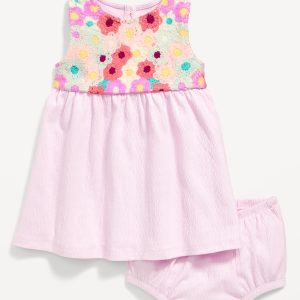 Sleeveless Crochet-Panel Dress and Shorts Set for Baby