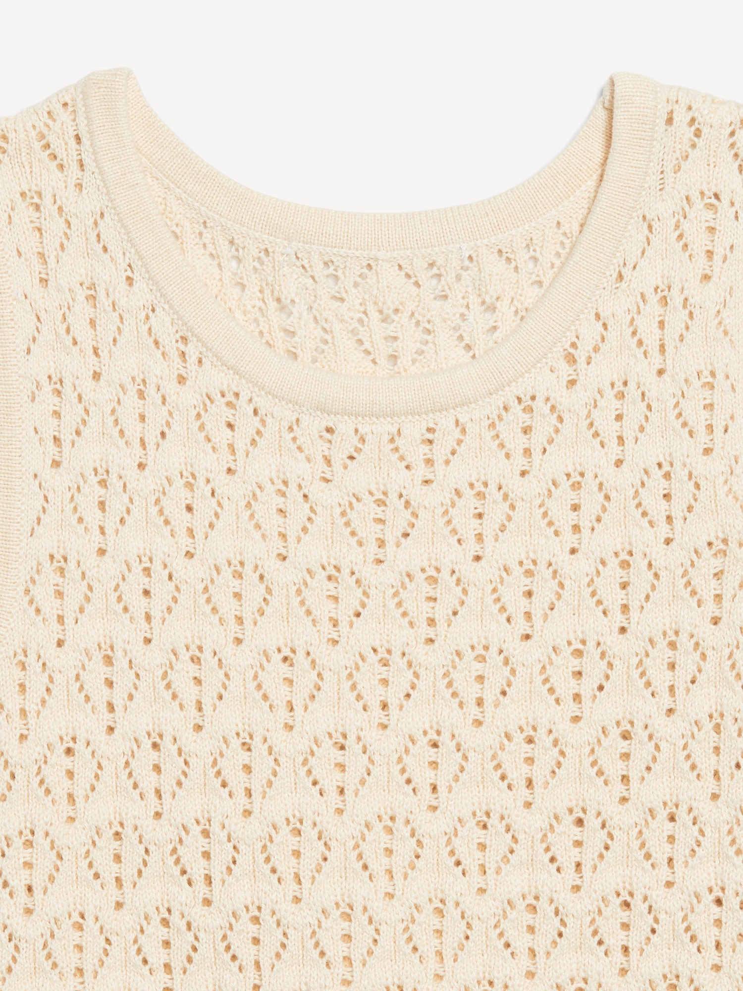 Sleeveless Crochet Tunic Sweater: high neck, scallop hem, pair back to our matching crochet pants, #761504