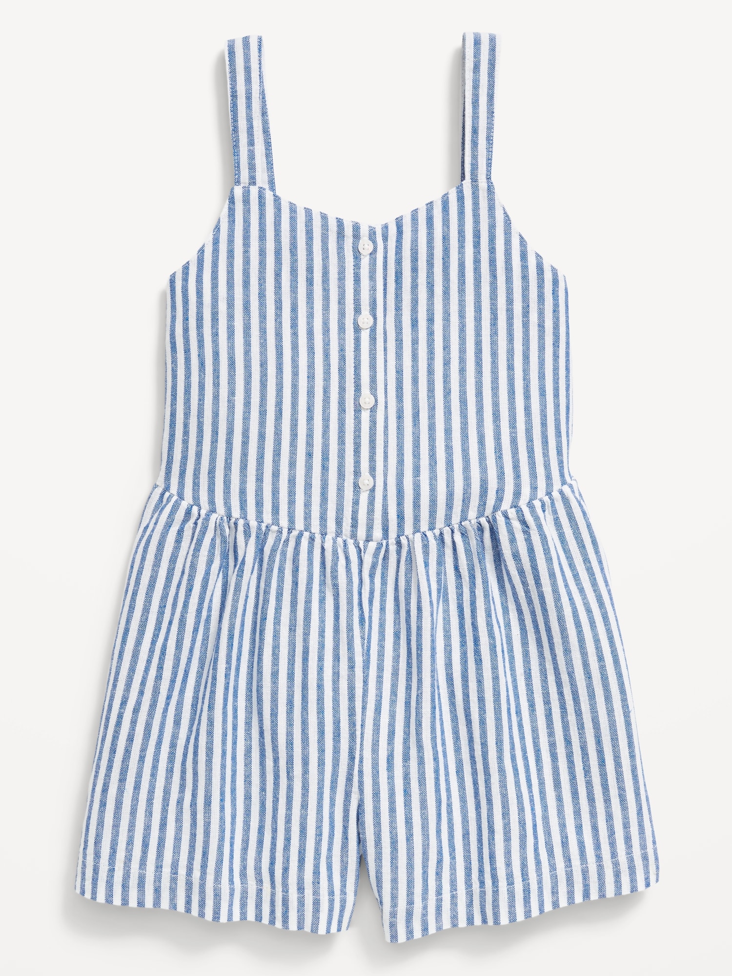 Sleeveless Linen-Blend Button-Front Romper for Girls