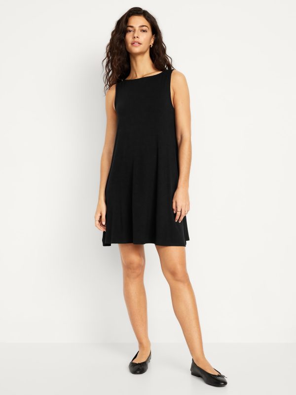 Sleeveless Mini Swing Dress: high neck, sleeveless, #705139