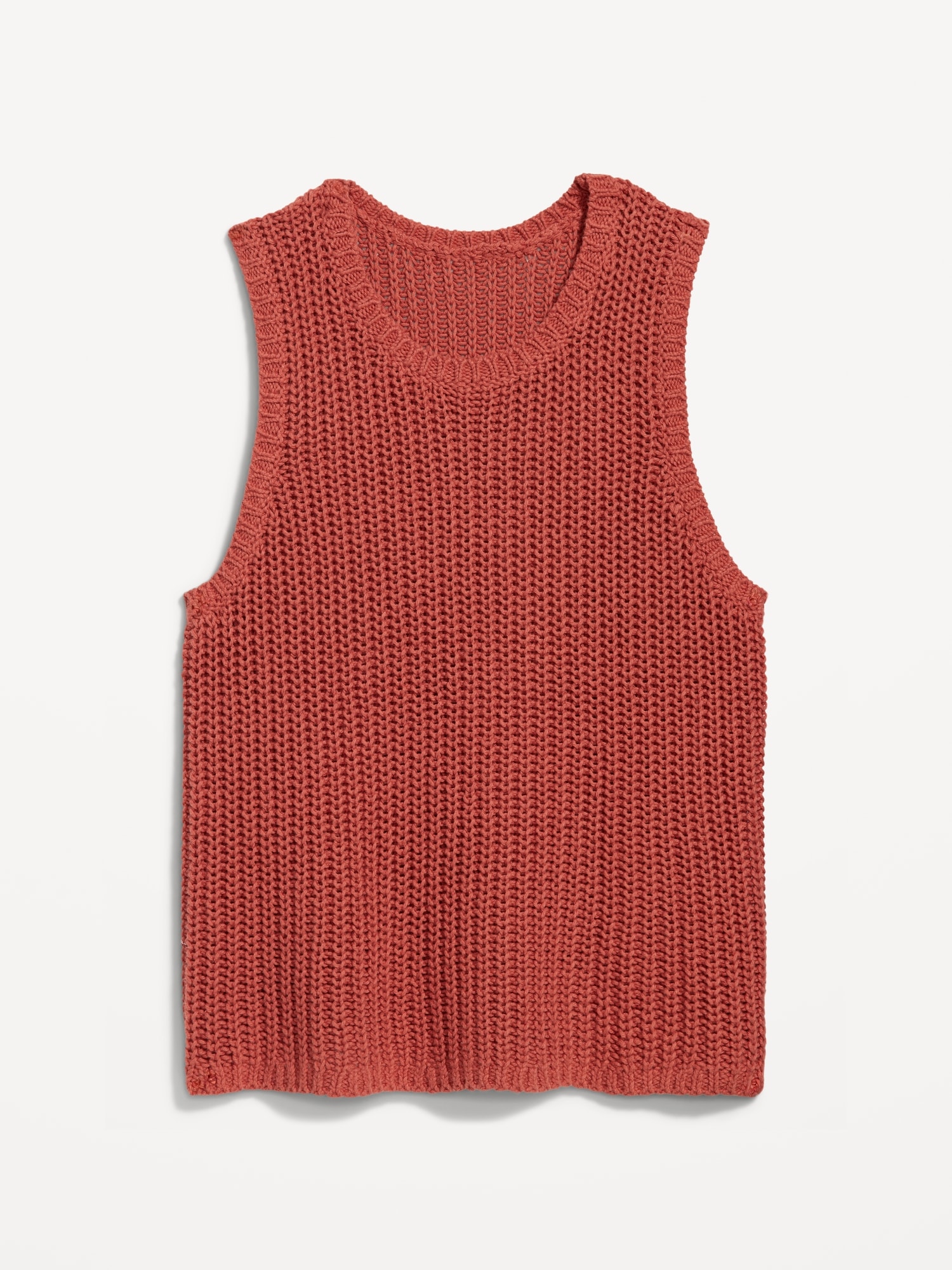 Sleeveless Open-Stitch Sweater: crew neck, sleeveless, pullover style, #664151