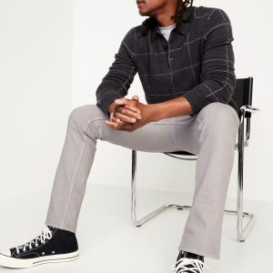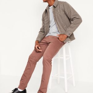 Slim Built-In Flex Five-Pocket Pants: Slim through the hip and thigh, in a soft-washed fabric with a hint of stretch.button front, zip fly, front scoop pockets and coin pocket, back patch pockets, #848863