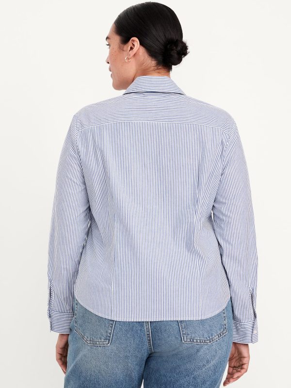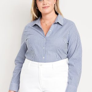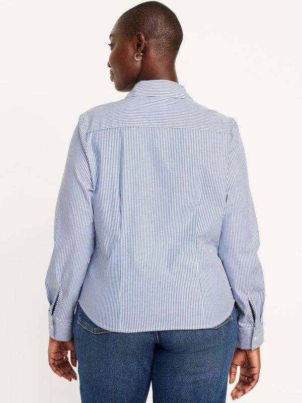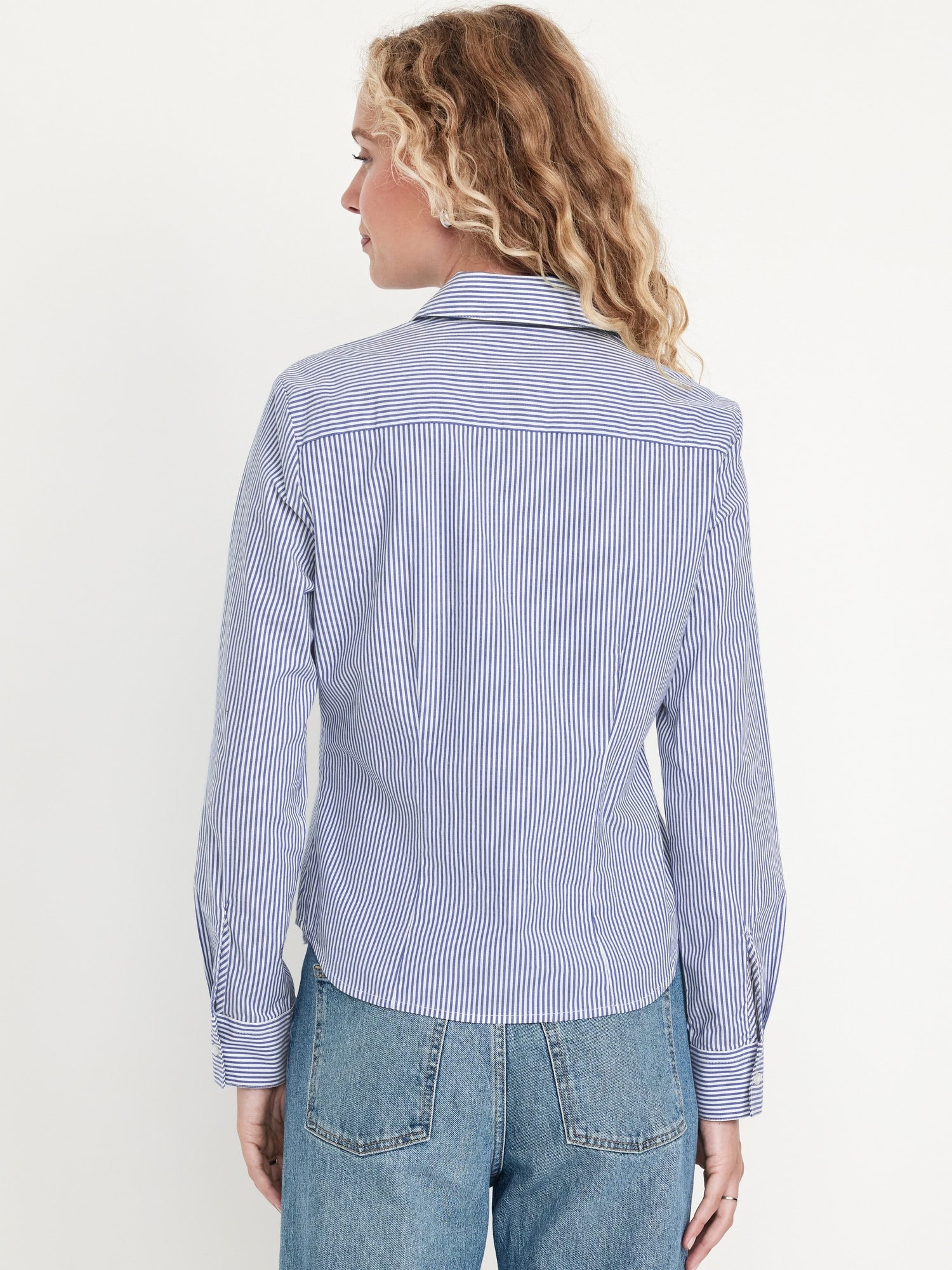 Slim Button-Down Shirt: spread collar, long sleeves, buttoned cuffs, button front, striped print, curved hem, #545902