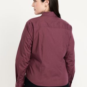 Slim Button-Down Shirt: spread collar, long sleeves, buttoned cuffs, button front, striped print, curved hem, #545902