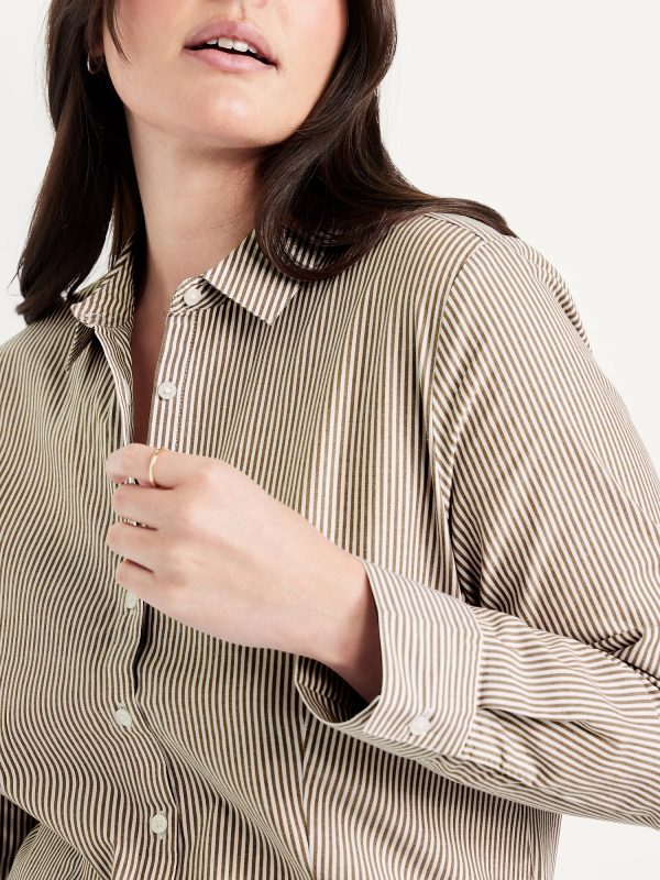 Slim Button-Down Shirt: spread collar, long sleeves, buttoned cuffs, button front, striped print, curved hem, #545902