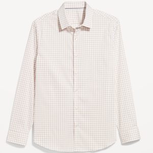 Slim Fit Pro Signature Performance Dress Shirt: 2″ pointed collar, built-in collar stays, long sleeves, buttoned cuffs, full-button front, breathable, quick drying, go-dry wicks moisture, #418101