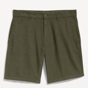 Slim Rotation Linen-Blend Chino Shorts — 8-inch inseam: button front, belt loops, zip fly, on-seam pockets, back welt pockets with button closure at left, #845880
