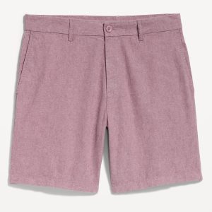 Slim Rotation Linen-Blend Chino Shorts — 8-inch inseam: button front, belt loops, zip fly, on-seam pockets, back welt pockets with button closure at left, #845880