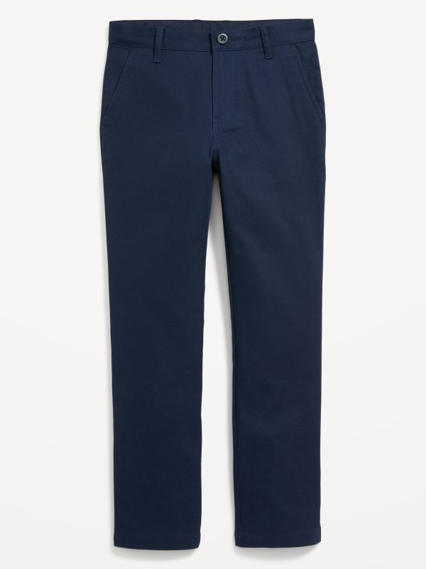 Slim School Uniform Chino Pants for Boys: Uniform Guarantee: Uniforms may be returned for a full refund with the original receipt for 365 days from the date of purchase.interior adjustable waistband, hook-and-bar closure in sizes 5-8, regular button keyhole closure in sizes 10-20, zip fly, diagonal on-seam pockets at front, welt pocket at back, reinforced knees for added durability, #665608