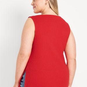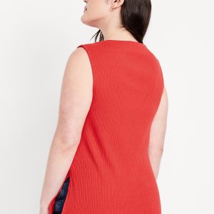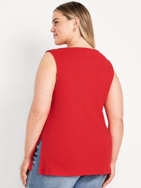 Slit-Neck Ribbed Top: high neck, sleeveless, side slits, #738891