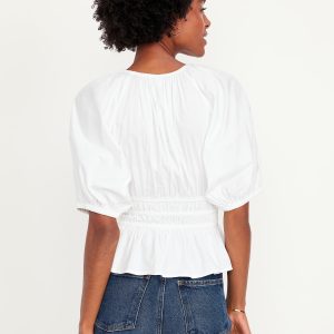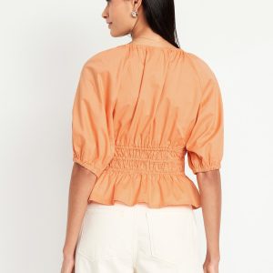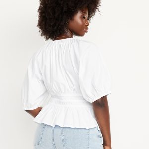 Smocked V-Neck Peplum Top