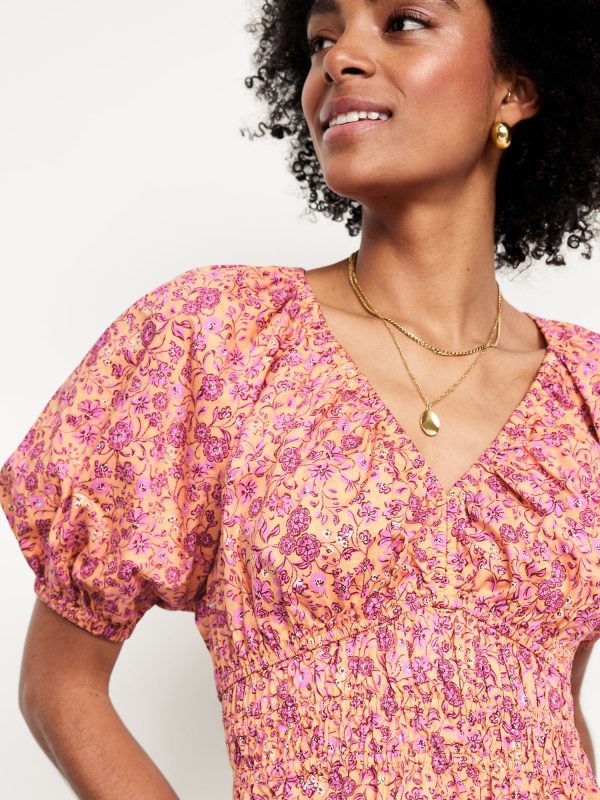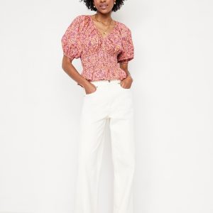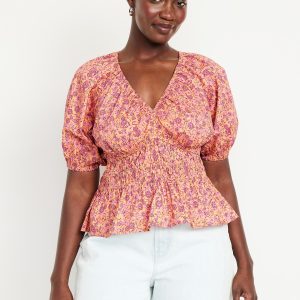 Smocked V-Neck Peplum Top