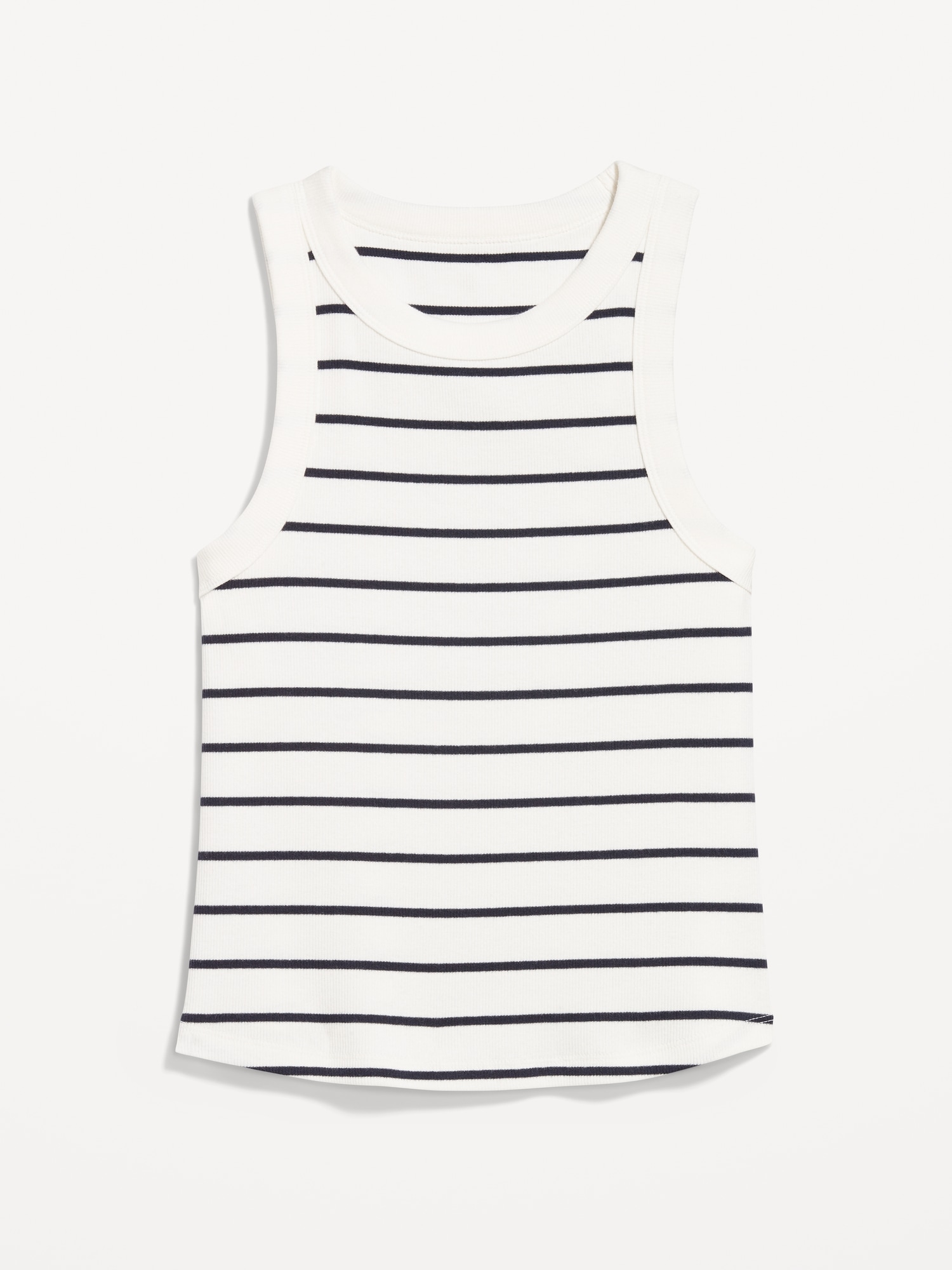 Snug Striped Tank Top: A skimming fit that hugs your bod just right.high crew neck, sleeveless, #889951