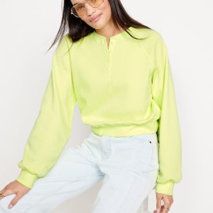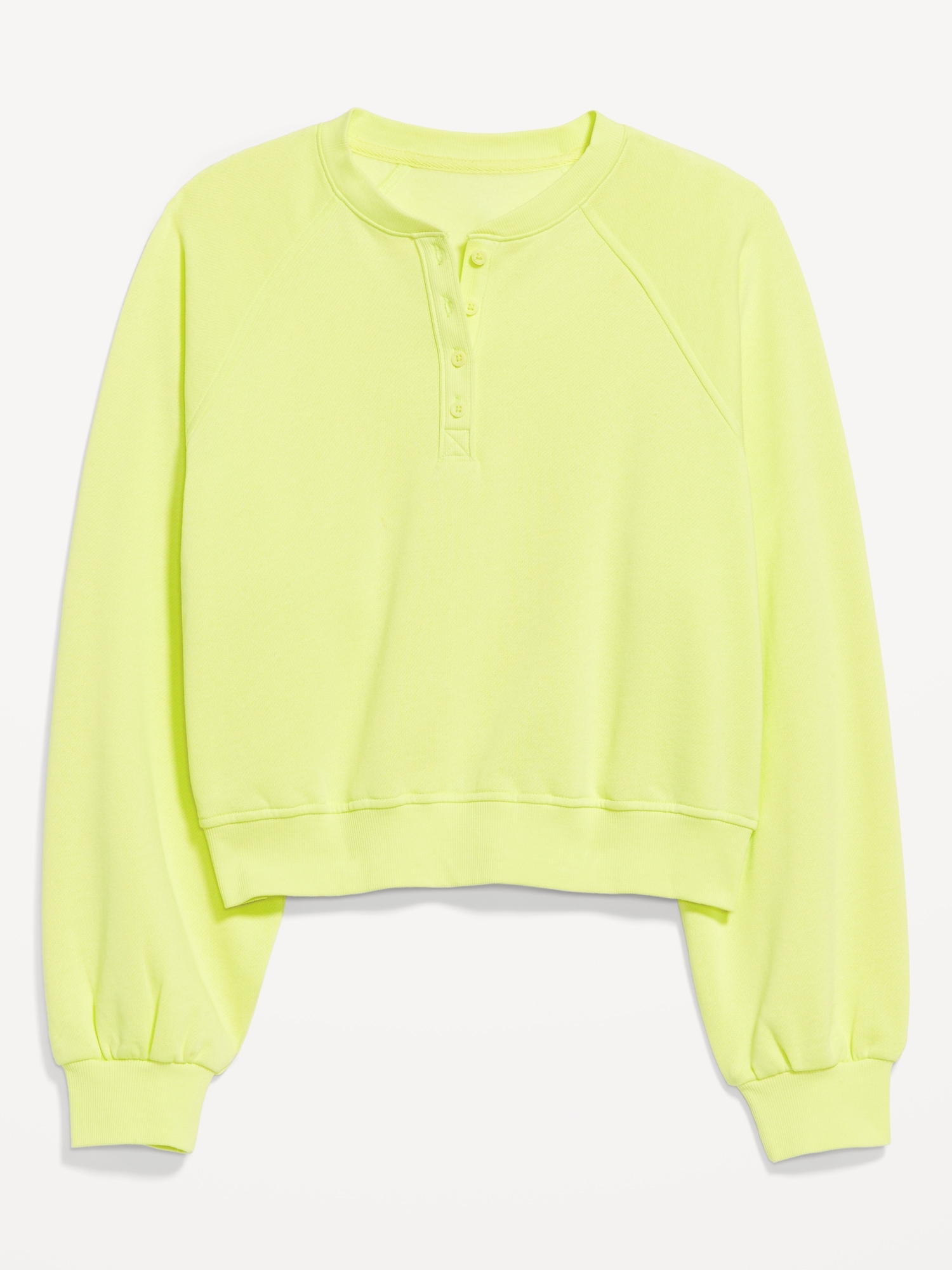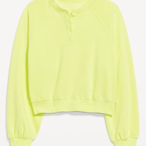 SoComfy Oversized Button-Front Sweatshirt: The perfect-weight, never-taking-this-off fleece.button-front crew neck, long blouson sleeves, rib-knit trim, pullover style, #764233