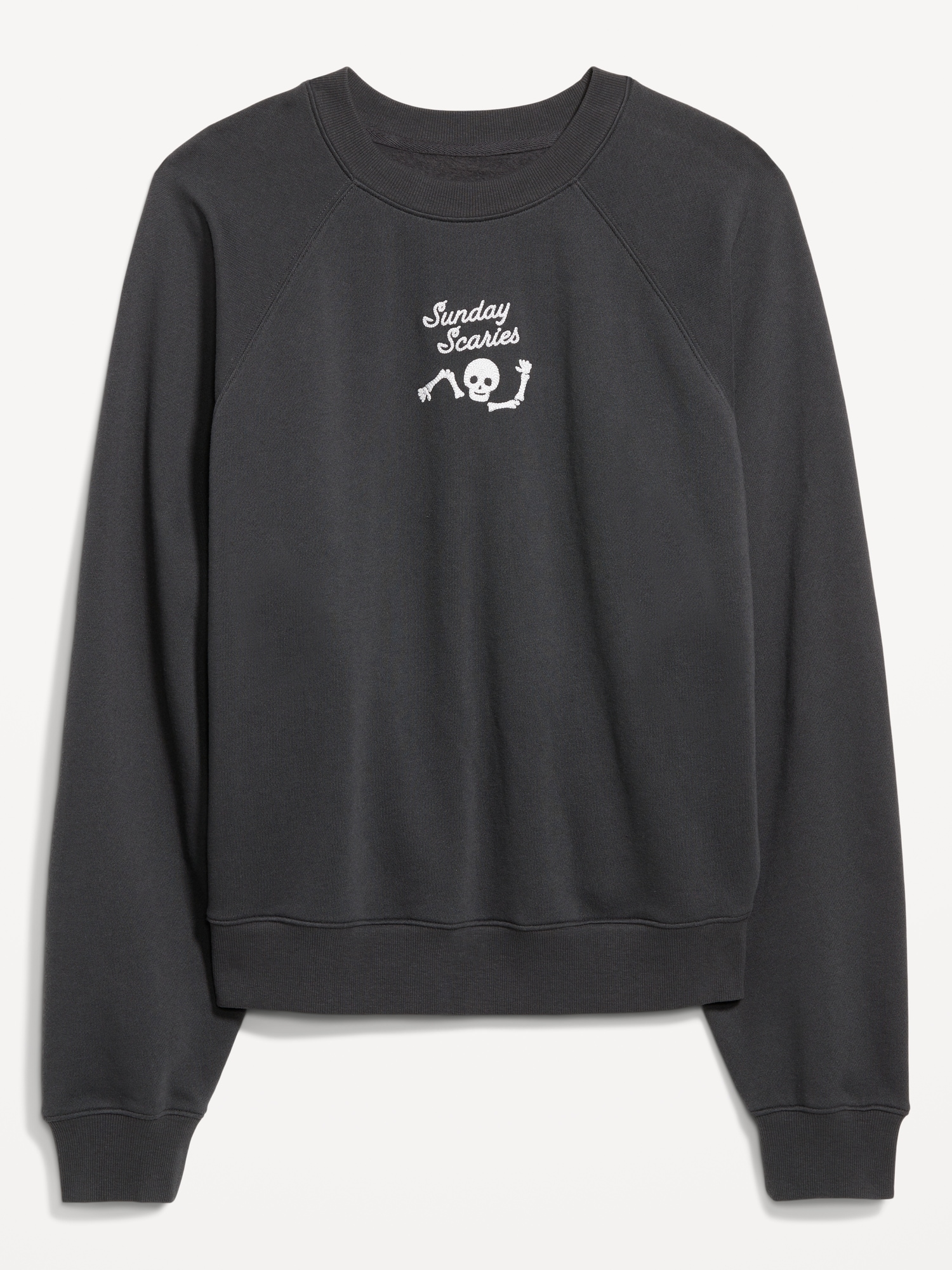 SoComfy Oversized Graphic Raglan Sweatshirt: The perfect-weight, never-taking-this-off fleece.graphic varies by color, crew neck, long raglan sleeves, rib-knit trim, pullover style, #824098