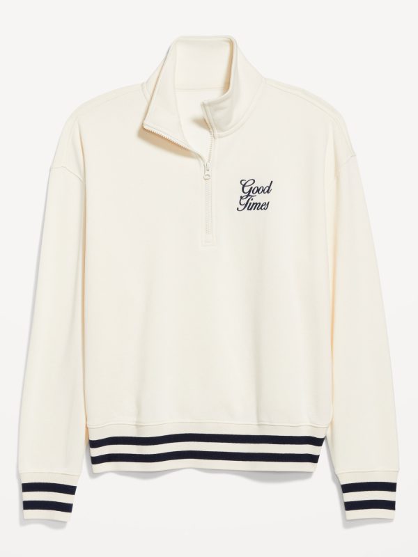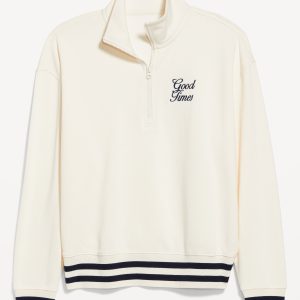 SoComfy Oversized Half-Zip Sweatshirt: The perfect-weight, never-taking-this-off fleece.mock neck, drop-shoulder sleeves, half-zip front, contrasting tipped trim, pullover style, #801579