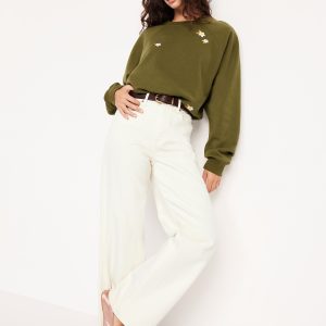 SoComfy Oversized Raglan Sweatshirt: The perfect-weight, never-taking-this-off fleece.embroidered floral accent, crew neck, long raglan sleeves, rib-knit trim, pullover style, #824100