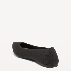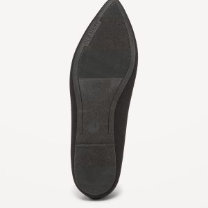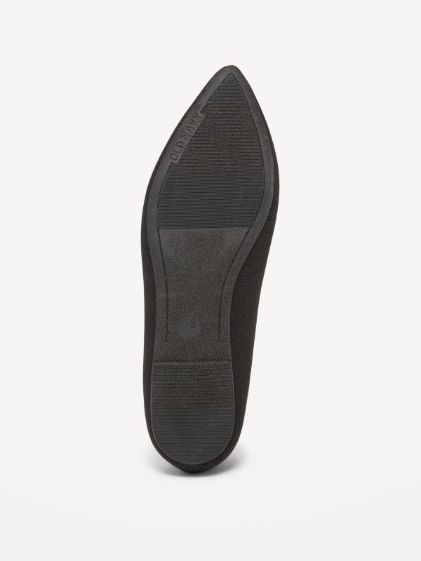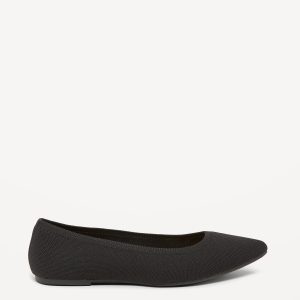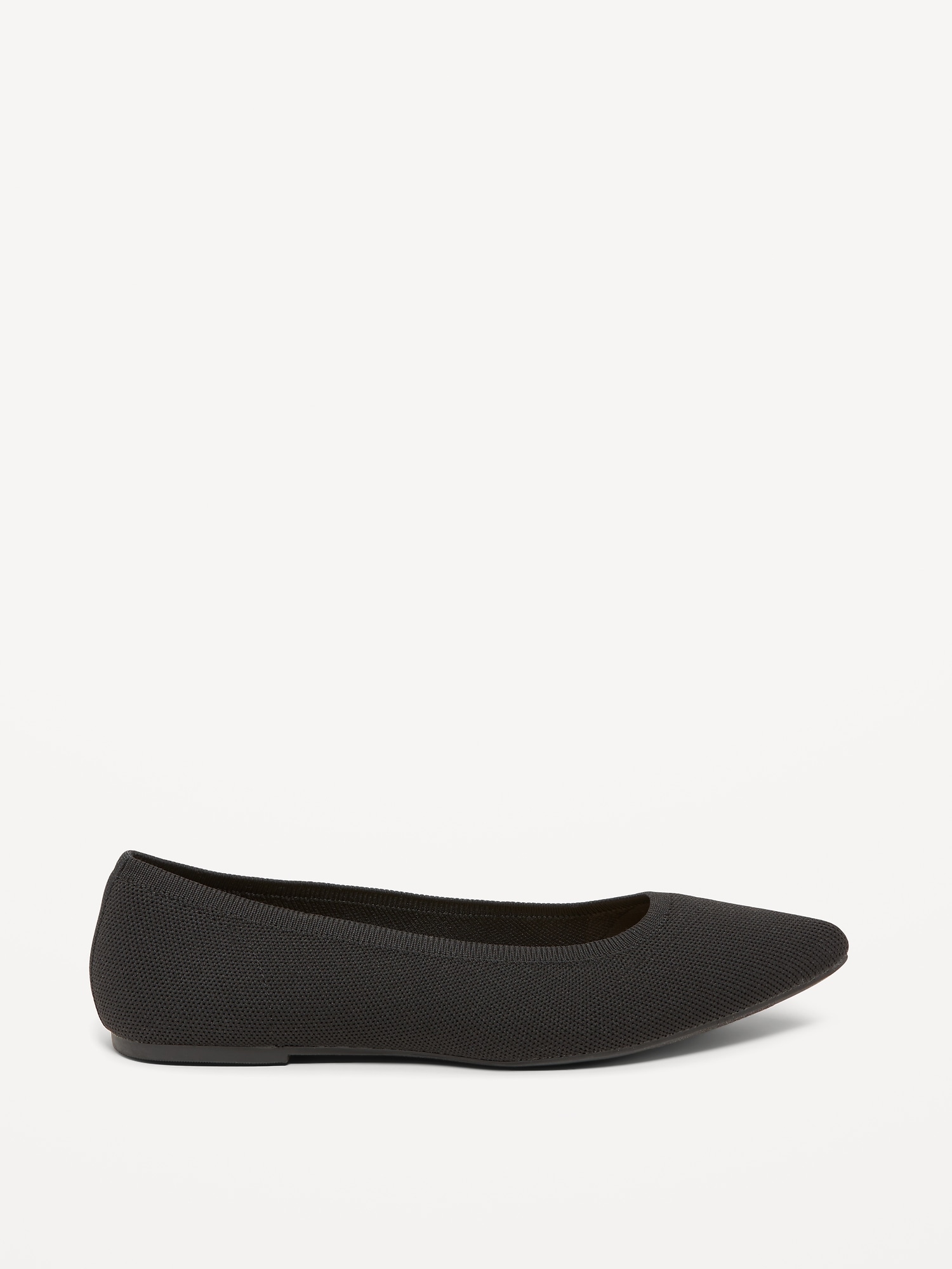 Soft-Knit Pointed-Toe Ballet Flats: soft-knit upper, pointed toe, quilted faux-suede foot bed, textured thermoplastic rubber outsole, 1/4″ heel, #795204