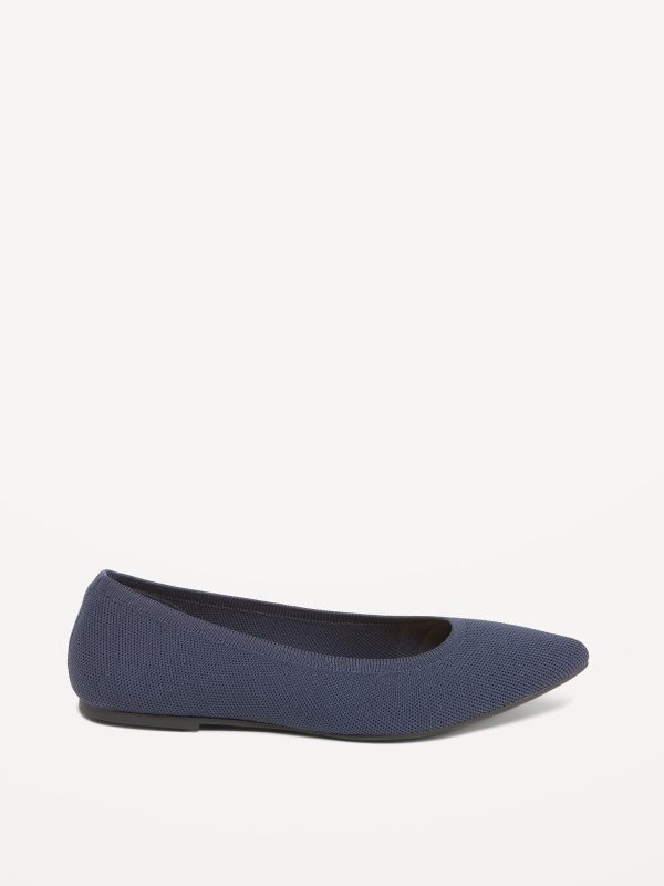 Soft-Knit Pointed-Toe Ballet Flats: soft-knit upper, pointed toe, quilted faux-suede foot bed, textured thermoplastic rubber outsole, 1/4″ heel, #795204